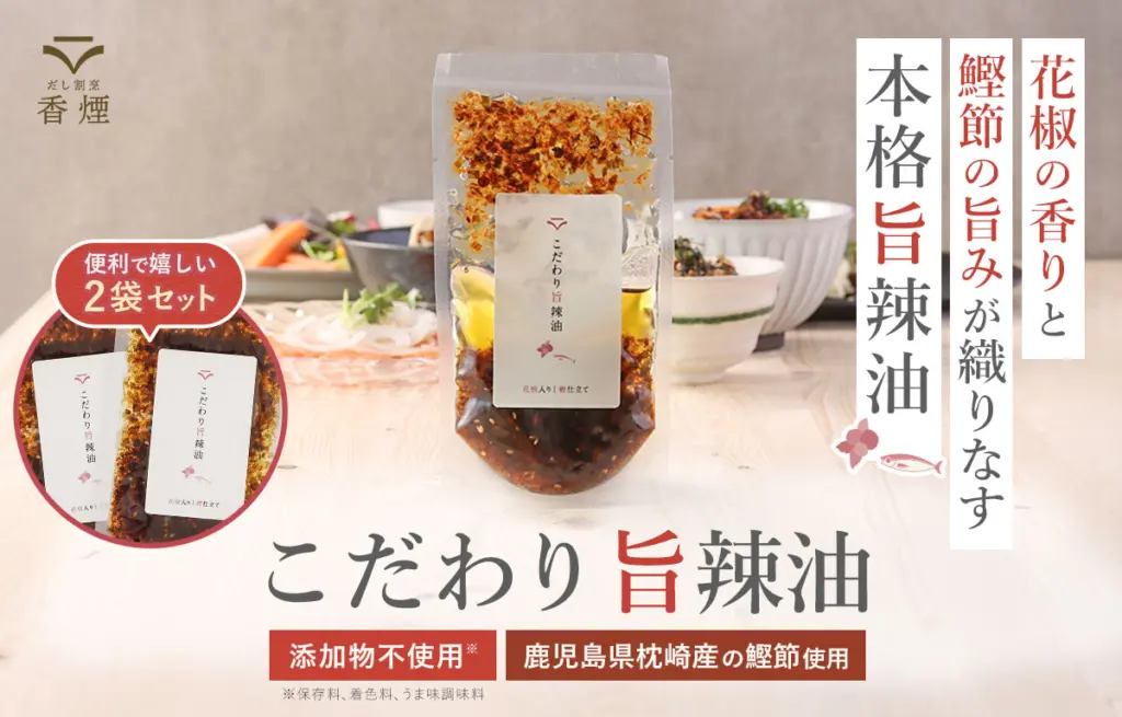 花椒の香りと鰹節の旨みが織りなす 本格旨辣油