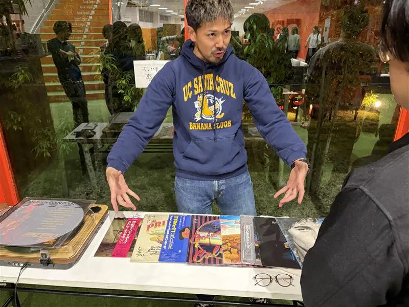 たっちゃんが自前のレコードとレコードプレーヤーを持ってきてくれたので、